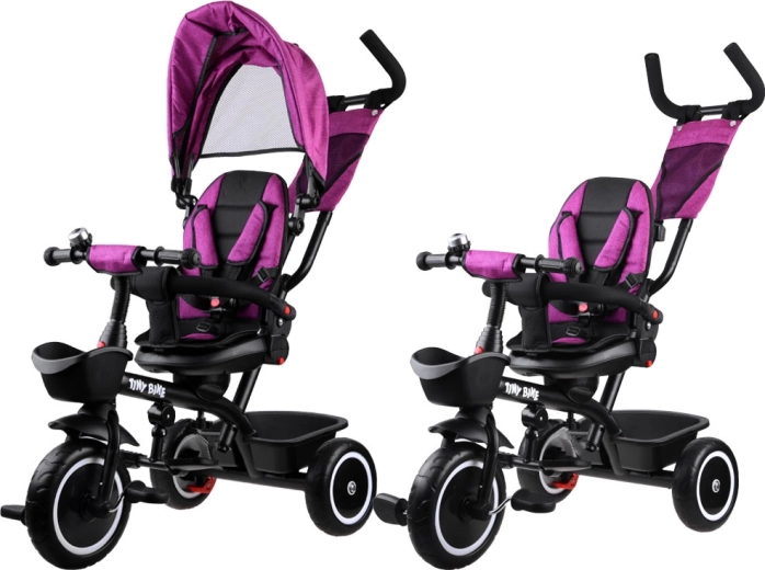 Πρακτικό παιδικό τρίκυκλο 3-σε-1 TINY BIKE με περιστρεφόμενο κάθισμα και σκίαστρο, που «μεγαλώνει» με το παιδί σας από 6 μηνών έως 5 ετών. Προσφέρει άνεση, ζώνες 5 σημείων, αναδιπλούμενο σκίαστρο με σίτα, γονεϊκό έλεγχο διεύθυνσης και απαιτήσης μηδενικής συντήρησης τροχούς EVA για ασφαλείς και ομαλές βόλτες.