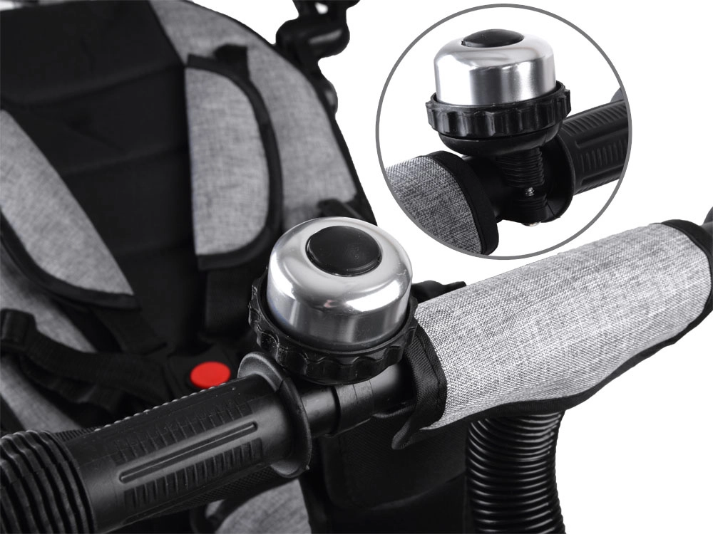Μεταλλικό κουδούνι για ασφαλή προειδοποίηση του περιβάλλοντος και άνετες αφρώδεις λαβές στη ρυθμιζόμενη οδηγική ράβδο διευκολύνουν τους γονείς να κατευθύνουν το τρίκυκλο σε πολυσύχναστους χώρους.