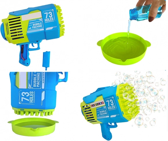 Αυτό το ισχυρό πιστόλι σαπουνόφουσκων μετατρέπει κάθε στιγμή σε ένα μαγικό θέαμα. Αρκεί να ρίξετε το υγρό στο μπολ, να βυθίσετε την κεφαλή και να πατήσετε το κουμπί – οι δεκάδες ακροφύσια δημιουργούν ταυτόχρονα έναν σταθερό χείμαρρο φουσκών. Ιδανικό για γενέθλια, γάμους, ψησίματα και παιχνίδια στον κήπο.