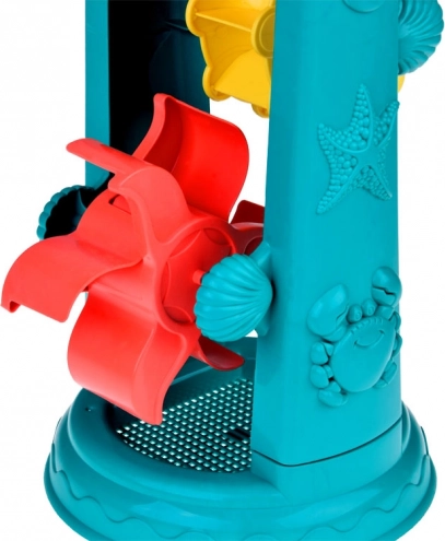 Το παιδικό σετ άμμου έχει σχεδιαστεί προσεκτικά με μοτίβα θαλάσσιων οργανισμών, όπως ψαράκια και χταπόδια. Το μεγαλύτερο ατού είναι ο υδροτροχός 37 εκατοστών, στον οποίο τα παιδιά μπορούν να ρίχνουν άμμο ή να χύνουν νερό και να παρακολουθούν πώς περιστρέφονται οι διπλοί τροχοί. Αυτό υποστηρίζει την ανάπτυξη της λογικής σκέψης και την κατανόηση αιτιωδών σχέσεων.