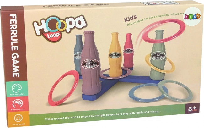 Αυτό το κλασικό παιχνίδι ρίψης σε μοντέρνα εκδοχή προσφέρει απλούς κανόνες και πολύ διασκέδαση. Στόχος είναι να ρίξετε τους κρίκους ώστε να προσγειωθούν στα πολύχρωμα μπουκάλια τοποθετημένα στη σταυροειδή βάση. Κάθε μπουκάλι έχει αντιστοιχισμένους πόντους, ώστε να δημιουργήσετε εύκολα ανταγωνιστικό παιχνίδι για παιδιά και ενήλικες.
