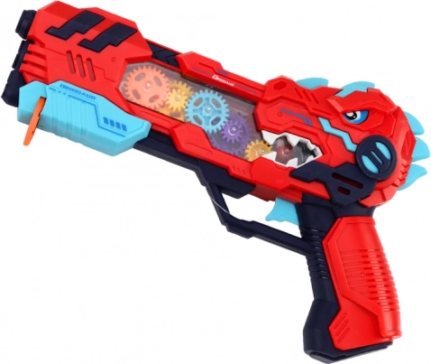 Ανακαλύψτε δυναμική διασκέδαση με το πιστόλι σε σχήμα δεινόσαυρου, που συνδυάζει προβολή δεινοσαύρων, φωτεινά εφέ και ηχητικά εφέ. Κάθε πάτημα της σκανδάλης ενεργοποιεί ένα φωτεινό σόου με περιστρεφόμενα, φωτιζόμενα οδοντωτά γρανάζια και ρεαλιστικούς ήχους.