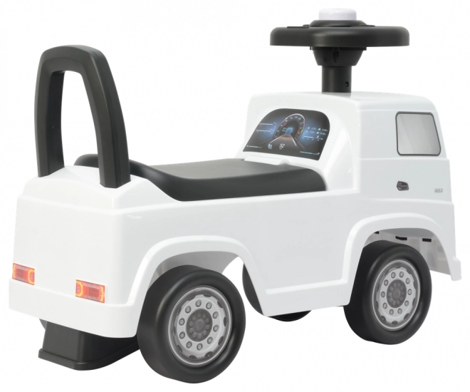 Στιλάτο παιδικό ποδηλατάκι ώθησης με επίσημη άδεια της MERCEDES ACTROS σε λευκό χρώμα, ιδανικό για τις πρώτες οδηγικές εμπειρίες στο σπίτι και έξω. Ελαφριά αλλά σταθερή πλαστική κατασκευή, ρεαλιστικές λεπτομέρειες τροχών, φώτων και μάσκας ψυγείου και άνετη ώθηση με τα ποδαράκια που υποστηρίζει την ανάπτυξη ισορροπίας και κινητικών δεξιοτήτων. Οι συμπαγείς διαστάσεις διευκολύνουν τον χειρισμό και την αποθήκευση.