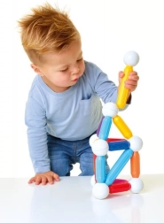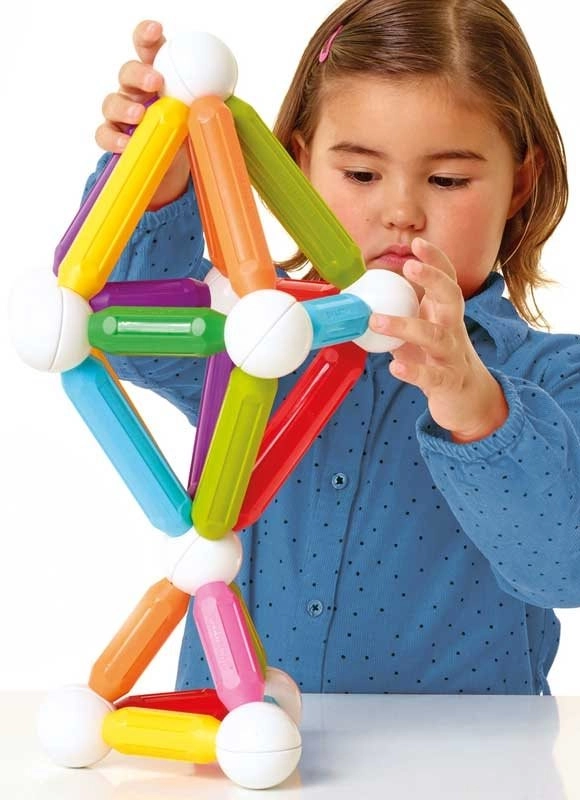 Οι ράβδοι και οι μπάλες ενώνονται με ένα «κλικ». Τα παιδιά χτίζουν γρήγορα πύργους, γέφυρες και δημιουργικά τρισδιάστατα σχήματα χωρίς περιττή απογοήτευση.