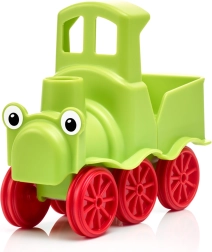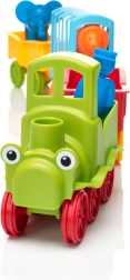Τα παιδιά θα συναρμολογήσουν μια μηχανή και τρία βαγόνια, θα τοποθετήσουν δύο ζωάκια από τρία κομμάτια το καθένα και θα προσθέσουν τον μηχανοδηγό. Τα μεμονωμένα μέρη των ζώων μπορούν να συνδυαστούν ελεύθερα – δημιουργούνται έτσι πραγματικά και φανταστικά ζώα που αναπτύσσουν τη δημιουργική σκέψη και τον συντονισμό ματιού–χεριού.