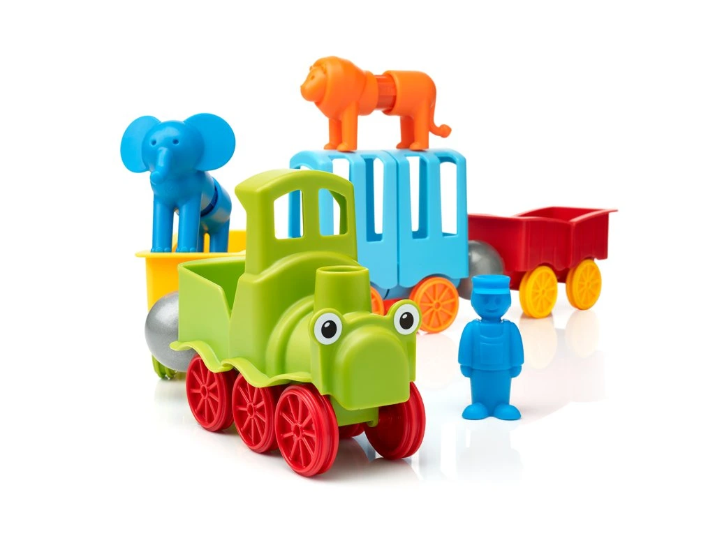 Αυτό το πολύχρωμο μαγνητικό σετ κατασκευών επιτρέπει στα παιδιά να συνδέσουν τα βαγόνια με τη μηχανή, να φορτώσουν τα ζωάκια και να ξεκινήσουν μια περιπετειώδη διαδρομή. Όλα τα κομμάτια είναι φτιαγμένα από μαλακό, ανθεκτικό και ασφαλές πλαστικό, σχεδιασμένο για τα μικρά παιδικά χέρια. Το σετ παραμένει αξιόπιστα ενωμένο χάρη στους ισχυρούς μαγνήτες SmartMax, που πληρούν αυστηρά πρότυπα ασφαλείας.