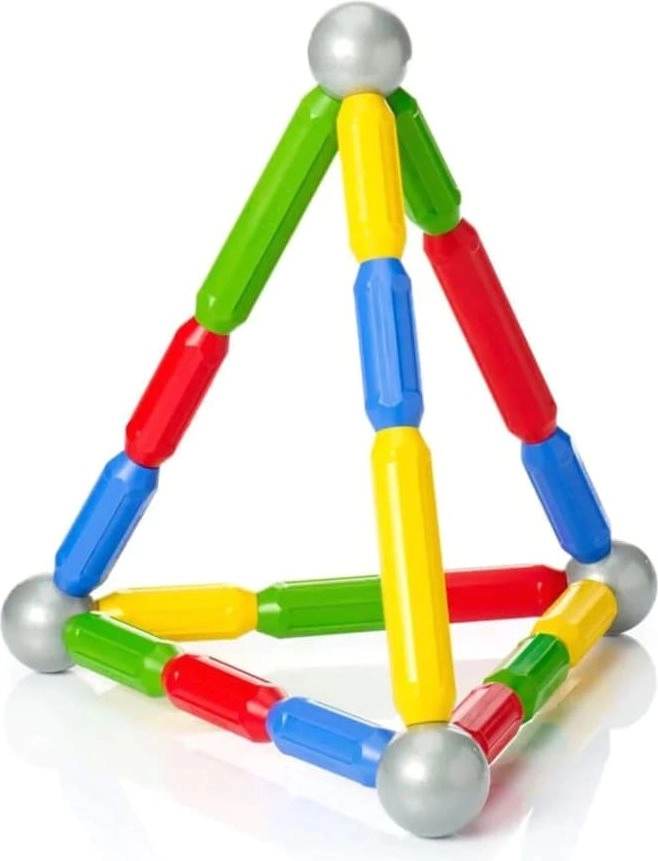 Οι ράβδοι και οι μεταλλικές μπάλες ενώνονται με ένα «κλικ». Τα παιδιά δημιουργούν χωρίς κόπο 2D και 3D σχήματα, από πύργους έως γέφυρες.