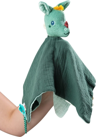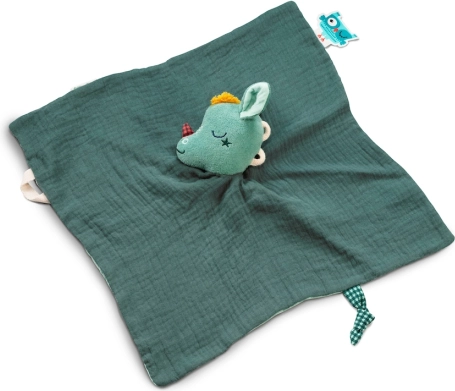 Η κουβερτούλα παρηγοριάς Δρακάκι Τζο έχει σχεδιαστεί για να προσφέρει μέγιστη άνεση και αίσθημα ασφάλειας στα παιδιά κατά τον ύπνο. Είναι φτιαγμένη από οργανικό βαμβάκι και η γέμιση είναι 100% πολυεστέρας, εξασφαλίζοντας απαλότητα και αντοχή. Με αυτό το λούτρινο, τα παιδιά μπορούν να παίζουν και σαν κουκλοθέατρο, προσφέροντας διασκεδαστικές δυνατότητες για αφήγηση ιστοριών. Η κουβερτούλα έχει διαστάσεις 32 x 32 cm και πλένεται εύκολα στο πλυντήριο σε απαλό πρόγραμμα στους 30°C.