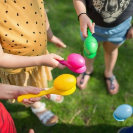 Η σκυταλοδρομία με αυγό είναι ένα απλό και εθιστικό κινητικό παιχνίδι για παιδιά και ενήλικες. Οι παίκτες μεταφέρουν σε πλαστικό κουτάλι το χρωματιστό «αυγό» με το τσόφλι και προσπαθούν να ολοκληρώσουν τη διαδρομή χωρίς να το ρίξουν. Εξαιρετική επιλογή για παιδικά πάρτι, νηπιαγωγεία, κατασκηνώσεις και οικογενειακές εξορμήσεις έξω ή στο γυμναστήριο.
