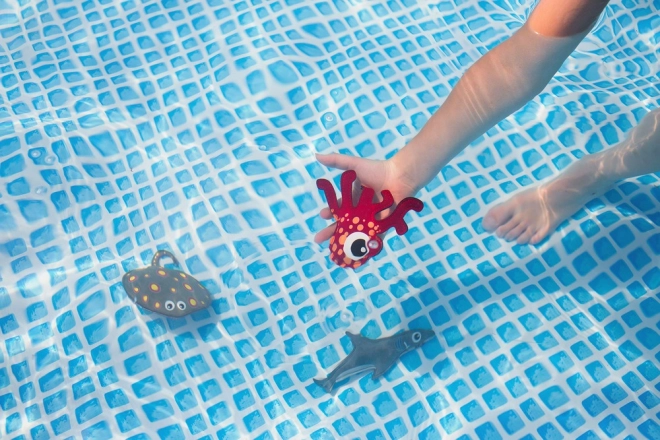Ανακαλύψτε τη μαγεία της κατάδυσης με θαλάσσια ζώα ειδικά σχεδιασμένα για υδάτινα παιχνίδια. Τα ζώα είναι κατασκευασμένα από ποιοτικό νεοπρένιο και, χάρη στο γέμισμα με άμμο, βυθίζονται στον πάτο, προσφέροντας μια διασκεδαστική πρόκληση για τους μικρούς κολυμβητές. Κάθε ζώο έχει διάμετρο περίπου 21 cm και το σετ περιλαμβάνει τρία διαφορετικά σχήματα.