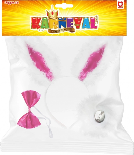 Λαχταριστό καρναβαλικό σετ για λουκ λαγού σε πάρτι, φωτογράφιση και θεματικές εκδηλώσεις. Περιλαμβάνει στέκα με αυτιά λαγού, ροζ παπιγιόν με λάστιχο και καρφιτσωτή ουρά. Ελαφρύ, άνετο και έτοιμο για άμεση χρήση – ιδανικό αξεσουάρ για στολές, πάρτι και καρναβάλι.