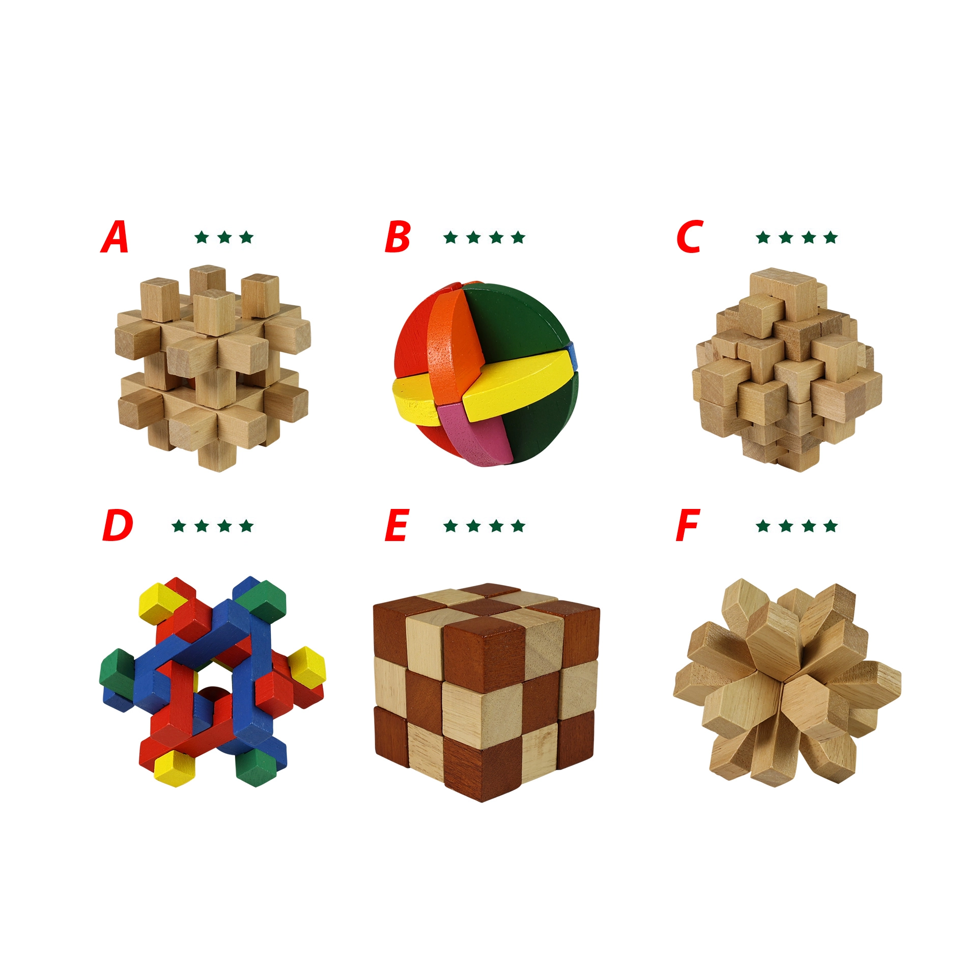 Αυτό το ξύλινο παζλ είναι ιδανική επιλογή για όποιον θέλει να εξασκήσει τις δεξιότητες επίλυσης προβλημάτων. Το προσφέρουμε σε έξι ποικίλες παραλλαγές που παρέχουν διαφορετικά επίπεδα πρόκλησης.