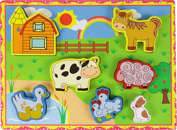 Αυτό το ξύλινο 3D παζλ-κουμπώματα είναι ιδανικό για τα μικρότερα παιδιά που θέλουν να ανακαλύψουν τον κόσμο γύρω τους. Με θέματα ζωάκια της φάρμας, το παιδί σας θα διασκεδάσει πολύ ενώ αναπτύσσει τις κινητικές του δεξιότητες.