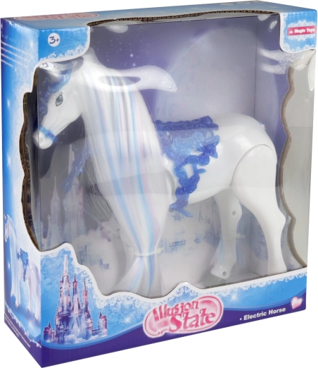 Παρουσιάζουμε το ηλεκτρικό άλογο από τη συλλογή Χειμερινό Βασίλειο, τον τέλειο σύντροφο για μικρούς λάτρεις των παραμυθιών και της φαντασίας. Αυτό το μαγικό άλογο προσφέρει τις ακόλουθες λειτουργίες: