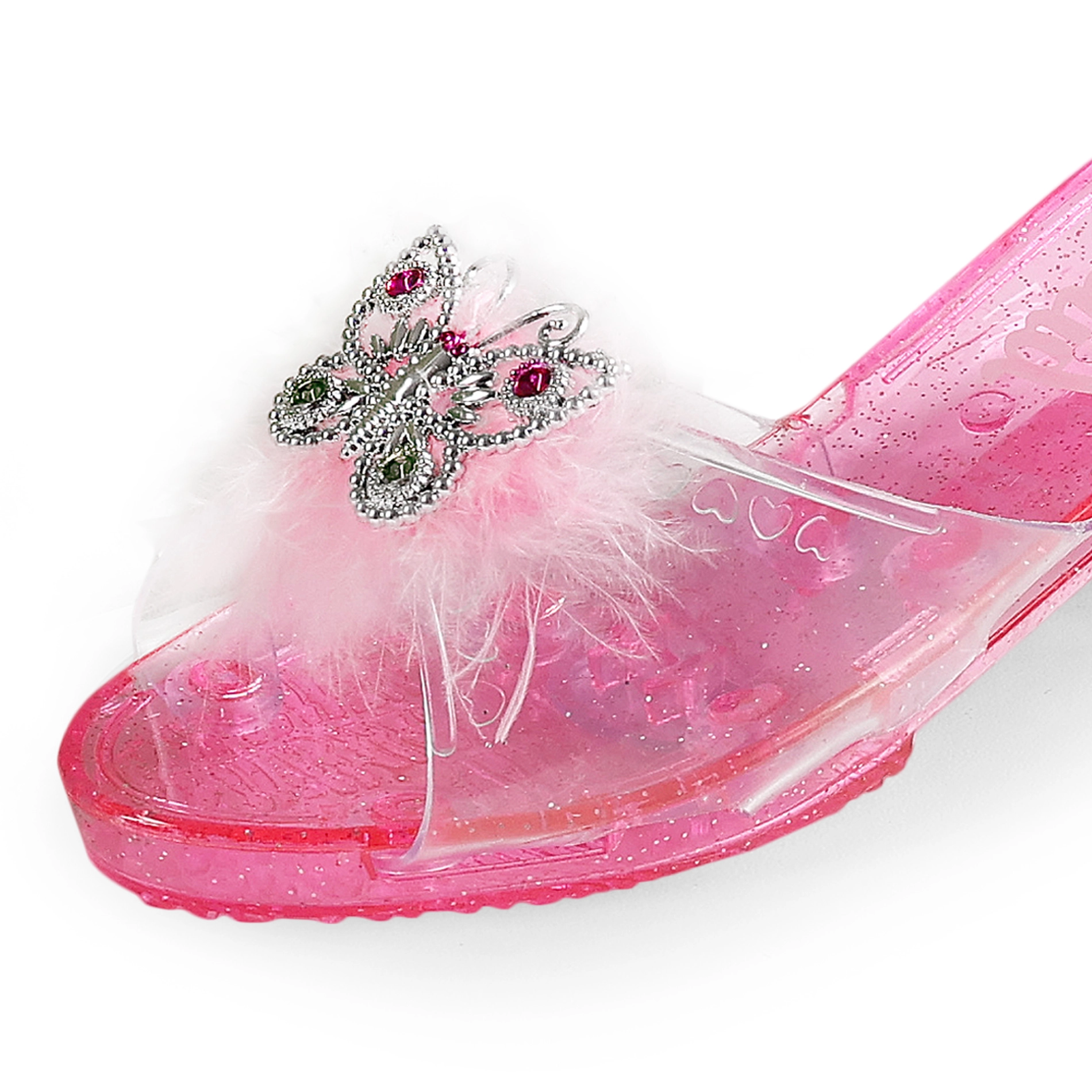 Πριγκιπικά γοβάκια που μεταμορφώνουν κάθε σύνολο σε παραμύθι. Σε χρυσό και ροζ, διακοσμημένα με εντυπωσιακή πεταλούδα και φτερά, αποτελούν την ιδανική επιλογή για μικρές πριγκίπισσες.