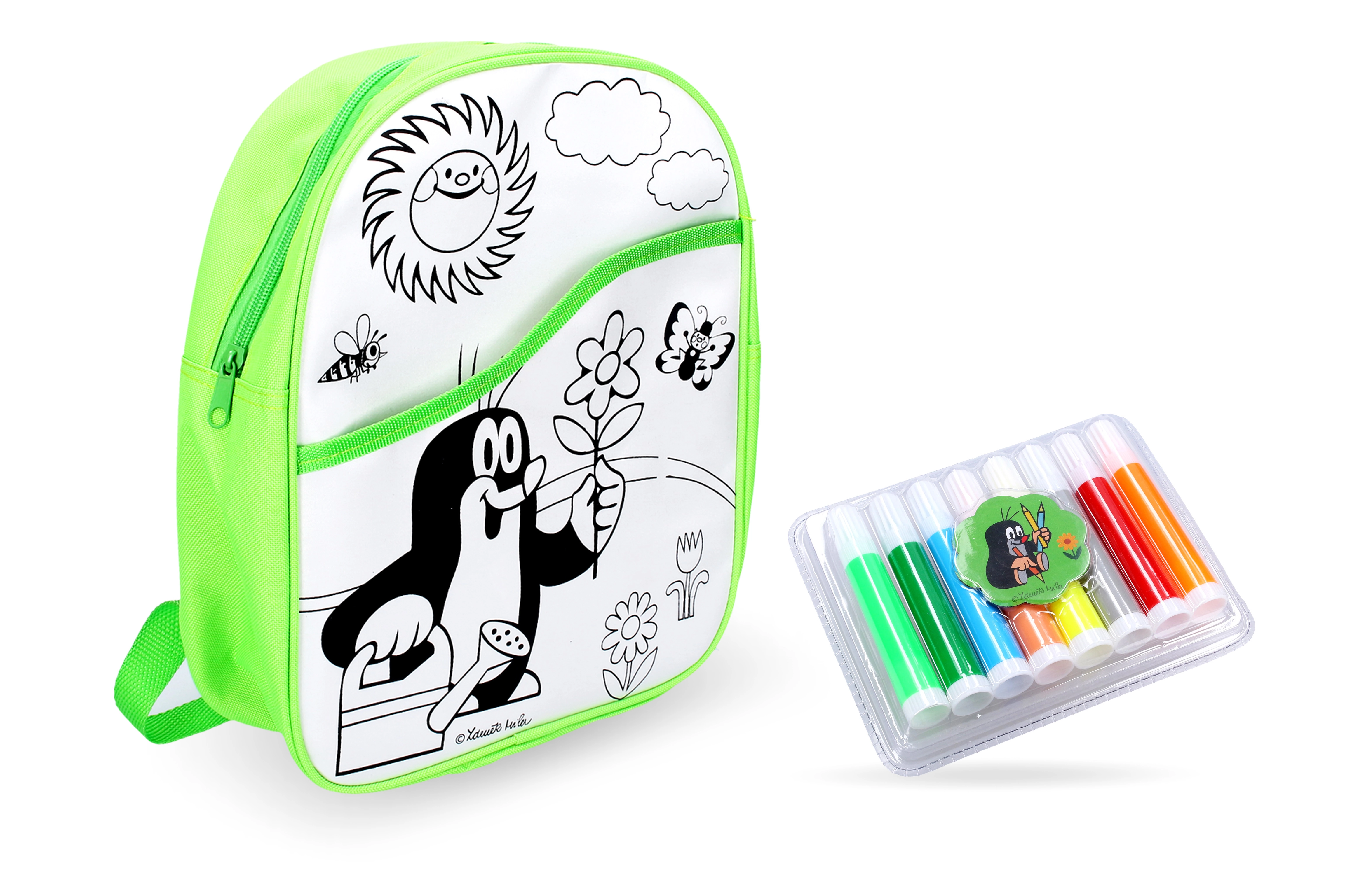 Διασκεδαστική και δημιουργική τσάντα για χρωμάτισμα με θέμα τον ΤΥΦΛΟΠΟΝΤΙΚΑ για μικρούς καλλιτέχνες. Στη συσκευασία περιλαμβάνονται 8 χρωματιστοί μαρκαδόροι για ύφασμα, οι οποίοι ξεπλένονται εύκολα με κρύο νερό. Ιδανική για εκδρομές και για το νηπιαγωγείο, διαστάσεις περίπου 30 × 27,5 cm, προτείνεται από 3 ετών.
