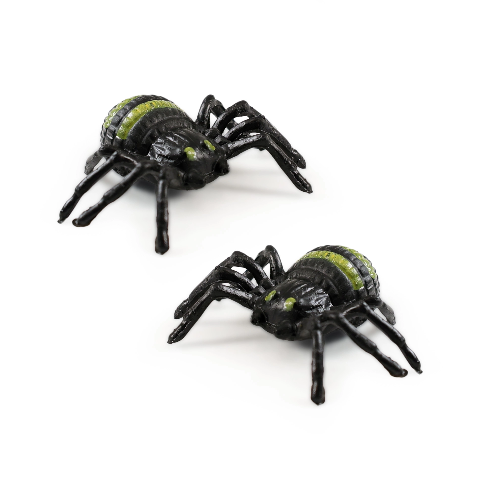 Λεπτομερώς κατασκευασμένες αράχνες με έντονες πράσινες ρίγες και ρεαλιστικά πόδια για τέλεια ψευδαίσθηση.