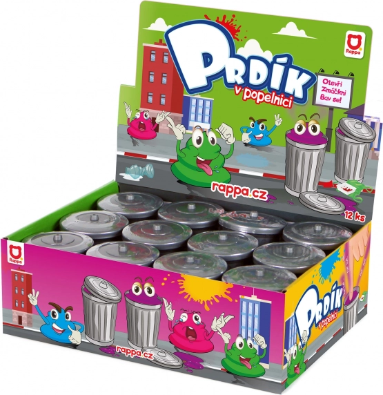 Διασκεδαστική πεπτώδης μάζα σε κάδο, ιδανική για πλάκα με φίλους και οικογένεια. Με πίεση με το δάχτυλο παράγει ψεύτικους ήχους αερίων που θα διασκεδάσουν σίγουρα. Διάλεξε κάδο, άφησε το χρώμα της μάζας να σε εκπλήξει και απόλαυσε άφθονη διασκέδαση όπου κι αν βρίσκεσαι.