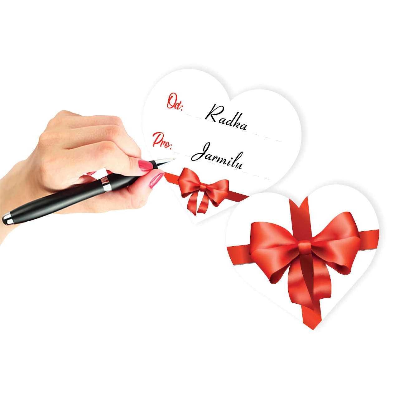 Στιλάτη σατέν κορδέλα και χάρτινη ετικέτα σε σχήμα καρδιάς για προσωπικό μήνυμα κάνουν το αρκουδάκι ένα τέλειο δώρο.