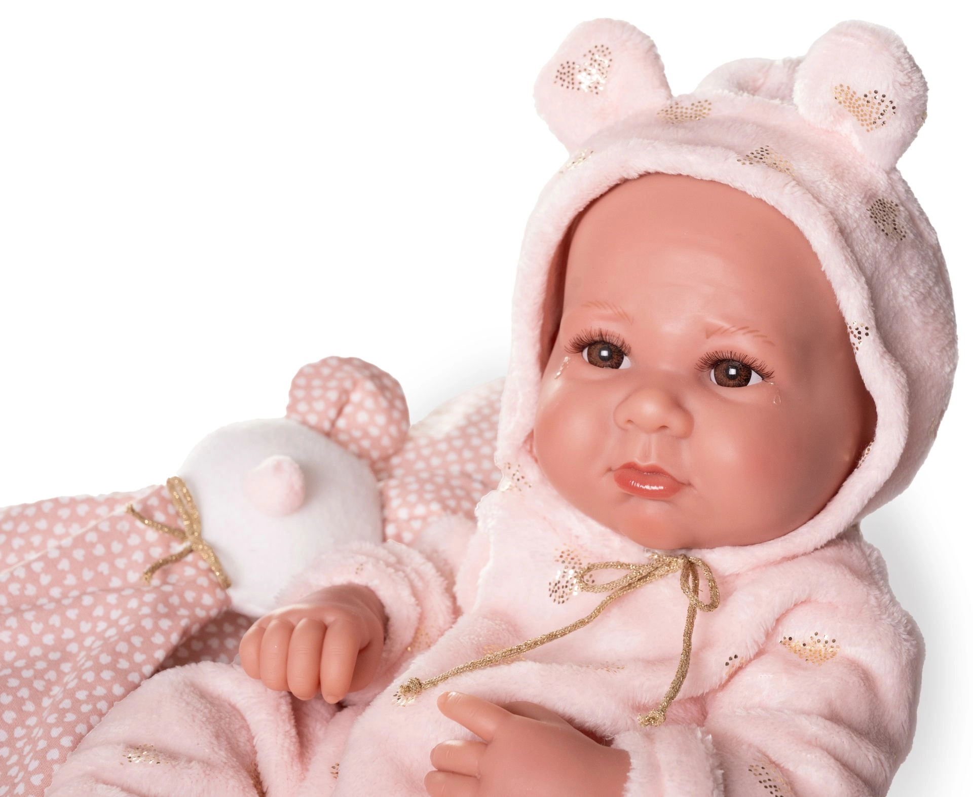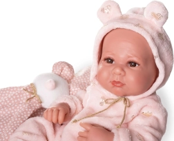Απαλά χαρακτηριστικά προσώπου, βρεφικές πτυχές και προσεγμένη υφή βινυλίου δημιουργούν την αίσθηση πραγματικού νεογέννητου και ενισχύουν το ενσυναισθητικό παιχνίδι ρόλων.