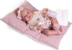 Η συσκευασία περιλαμβάνει μπουκαλάκι που γεμίζει με νερό και δύο μιας χρήσης πάνες. Ολόκληρο το σετ τοποθετείται προσεκτικά σε κουτί δώρου, καθιστώντας το ένα ιδανικό δώρο για κάθε περίσταση. Η κούκλα μεγέθους 42 εκ. είναι ιδανική για παιδιά από 3 ετών, ενθαρρύνει το δημιουργικό παιχνίδι και τη φροντίδα.