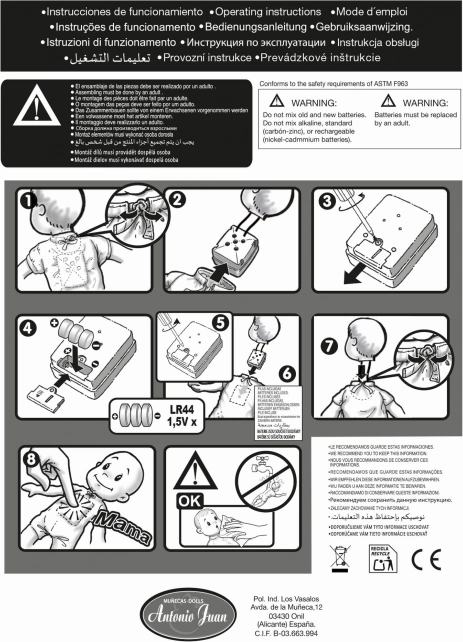 Με ένα απαλό πάτημα στην κοιλίτσα, η κούκλα παράγει χαριτωμένους ήχους μπαμπαλίσματος. Η λειτουργία τροφοδοτείται από 3× LR44 (περιλαμβάνονται).