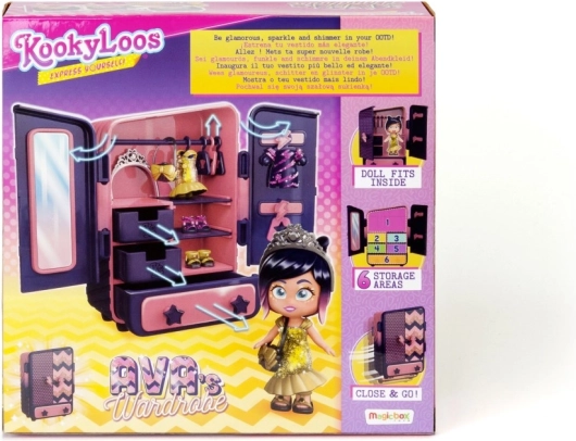 Η κούκλα Ava λατρεύει τα λαμπερά outfits, τα οποία περιλαμβάνονται στη συσκευασία. Το σετ διαθέτει επίσης μια πρακτική ντουλάπα, όπου μπορείτε να αποθηκεύετε σύνολα και αξεσουάρ. Αυτό το σετ προσφέρει πλούσιες δυνατότητες για δημιουργικό και φανταστικό παιχνίδι.