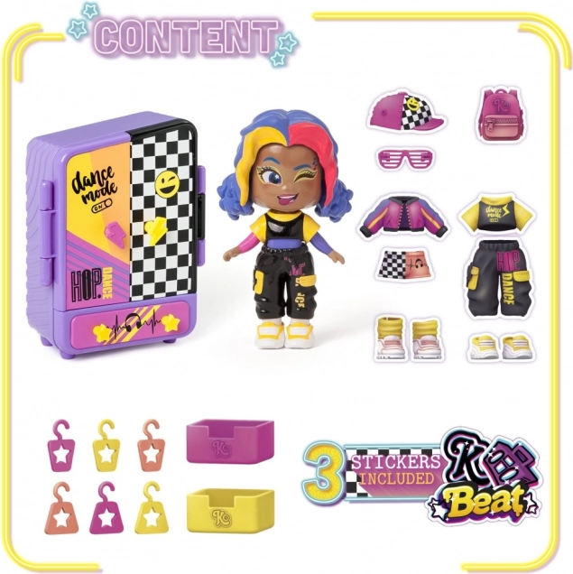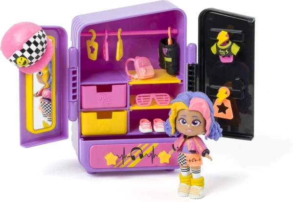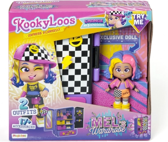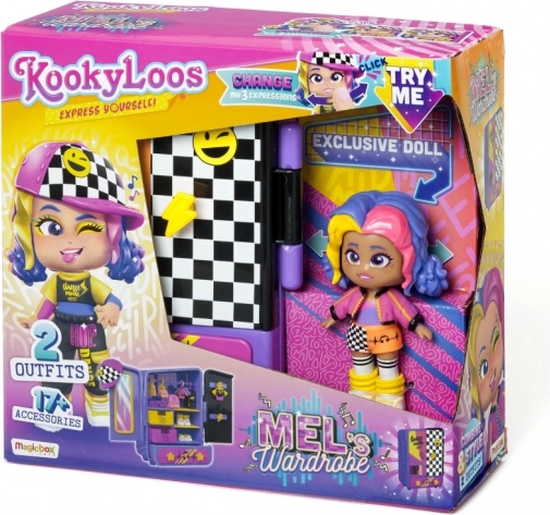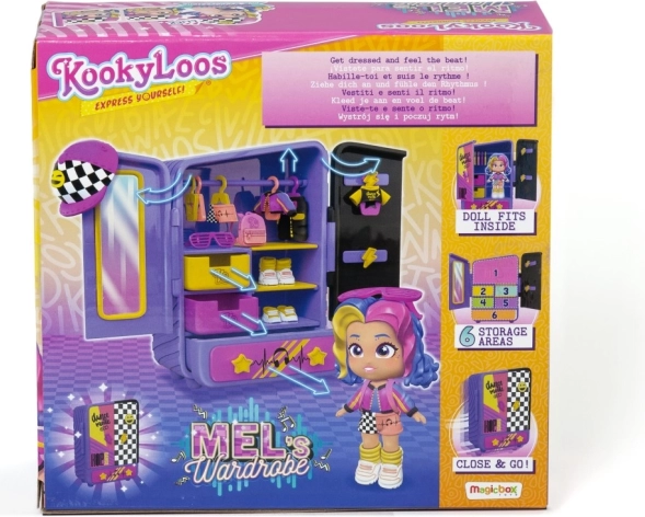 Βυθιστείτε σε έναν κόσμο φαντασίας με το σετ παιχνιδιού KookyLoos Mel, που φέρνει διασκέδαση και δημιουργικότητα σε κάθε στιγμή παιχνιδιού. Το σετ περιλαμβάνει την κούκλα Mel, που λατρεύει το hip-hop και τον χορό. Με τα εντυπωσιακά της σύνολα, μπορείτε να ετοιμάσετε τον δικό σας χορευτικό διαγωνισμό ή να οργανώσετε επίδειξη μόδας ανάλογα με τη διάθεσή σας. Η ντουλάπα σε κομψές μωβ-ροζ αποχρώσεις σας επιτρέπει να αποθηκεύετε με τάξη όλα τα αξεσουάρ. Κάθε παιχνίδι είναι μοναδικό χάρη στην αλλαγή των εκφράσεων του προσώπου της κούκλας με ένα απλό κλικ.