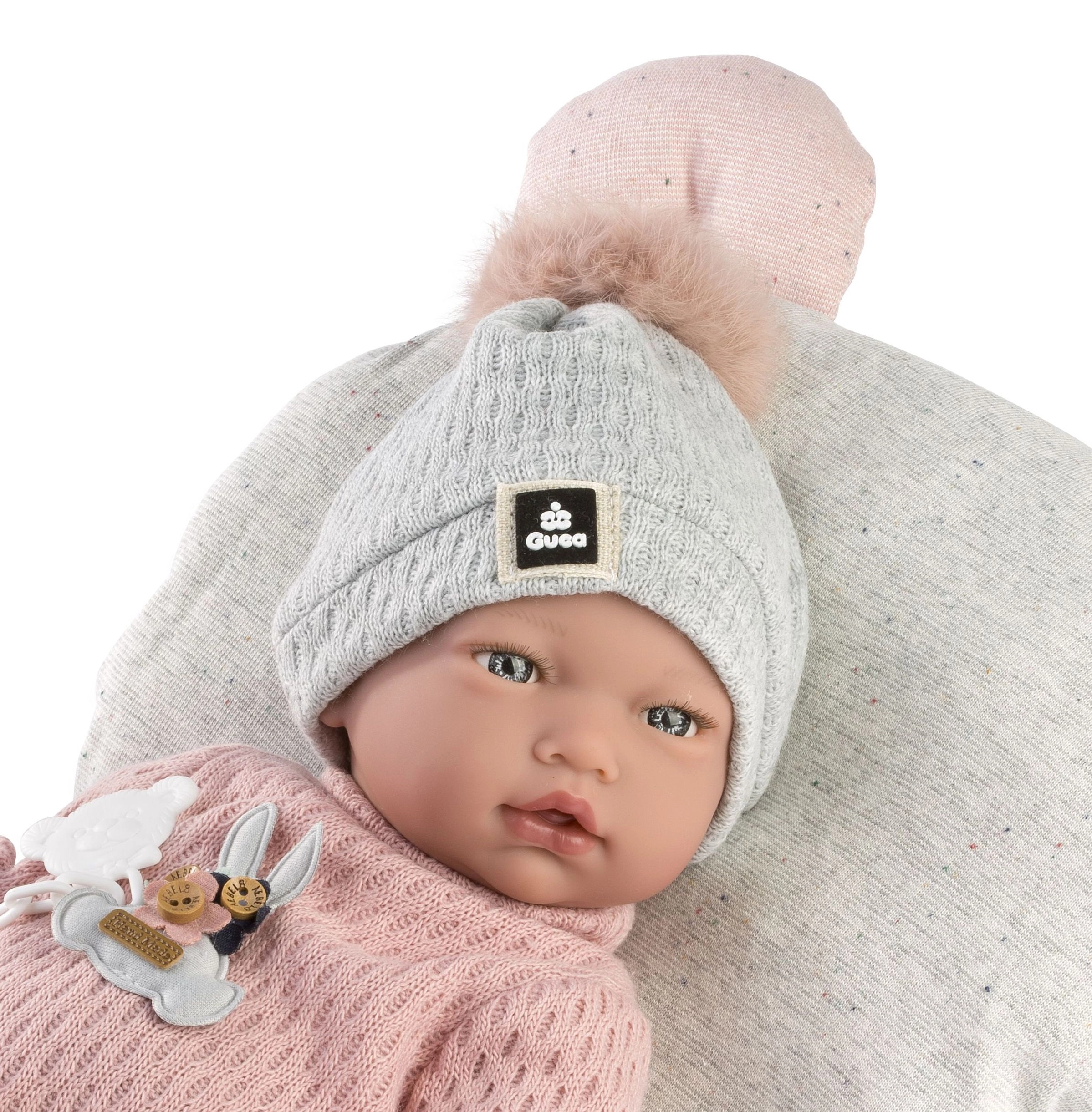 Ανακαλύψτε τη μαγεία του παιχνιδιού με τη ρεαλιστική κούκλα της Guca – ένα χαριτωμένο μωρό μεγέθους 38 cm με ήχο παιδικού γέλιου όταν πιέζετε το στηθάκι. Η κούκλα έχει μαλακό υφασμάτινο σώμα, αρθρωτά άκρα στους συνδέσμους και μπορεί να κάθεται. Προσεκτικά χειροποίητη στην Ισπανία, παραδίδεται σε συσκευασία δώρου.