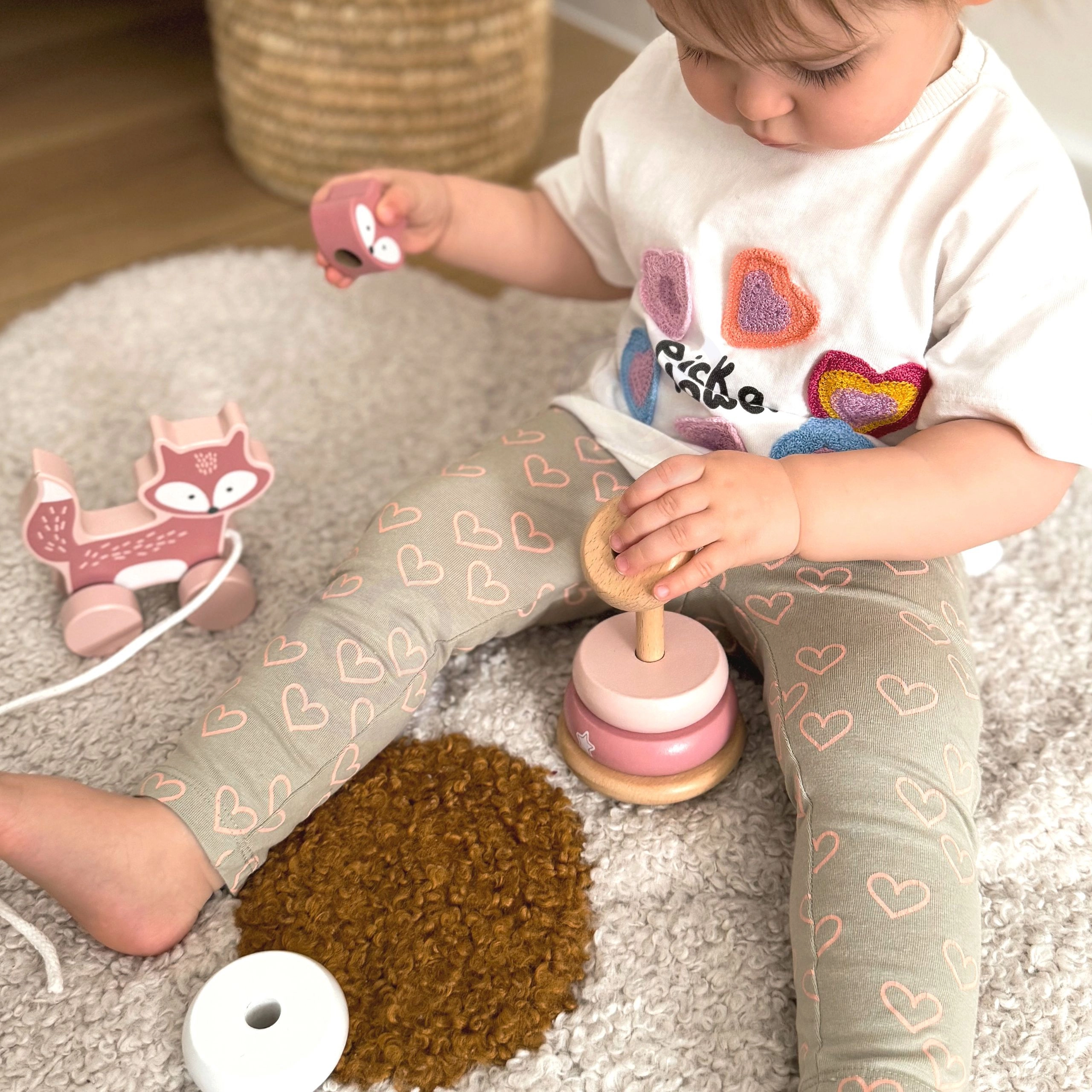 Ένα πακέτο, διπλή διασκέδαση. Τα παιδιά μπορούν να εναλλάσσουν το ήρεμο στοίβαγμα κρίκων με το ενεργητικό τράβηγμα της αλεπουδίτσας, ενισχύοντας τη μάθηση και την κίνηση.