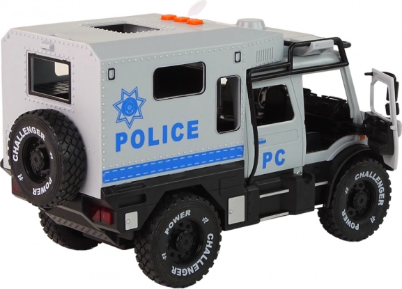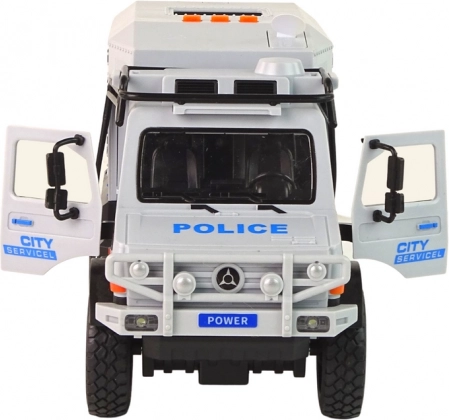 Χάρη στις ανοιγόμενες εμπρόσθιες πόρτες, τα παιδιά μπορούν να εξερευνήσουν το εσωτερικό του οχήματος και να δημιουργήσουν τα δικά τους σενάρια. Τα ηχητικά και φωτεινά εφέ προσθέτουν έξαψη! Τα LED φώτα στο μπροστινό μέρος του οχήματος ανάβουν με το πάτημα ενός από τα τρία κουμπιά στην οροφή, ενώ οι ήχοι συναγερμού προσδίδουν ρεαλισμό.