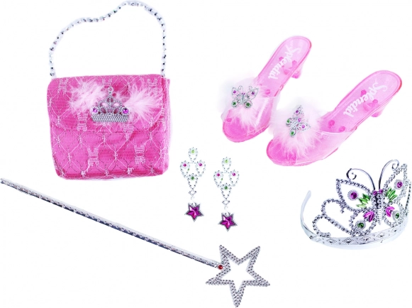 - Γοβάκια, τσάντα, στεκάκι με κορόνα, σκουλαρίκια, ραβδάκι