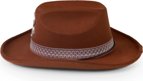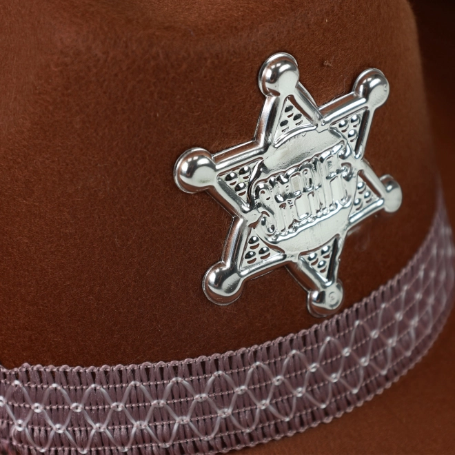 Μεταμορφώστε τον μικρό καουμπόη σε σερίφη σε μια στιγμή. Το καφέ καπέλο με κομψή κορδέλα και γυαλιστερό αστέρι σερίφη μένει σταθερό χάρη στο λάστιχο, ώστε να εφαρμόζει τέλεια ακόμα και σε έντονο παιχνίδι.