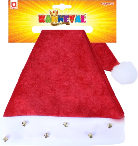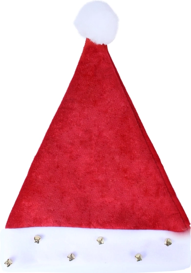 Στυλάτο χριστουγεννιάτικο σκουφί με λευκό τελείωμα, διακοσμημένο με κουδουνάκια και φουντίτσα. Ιδανικό για χριστουγεννιάτικα πάρτι.