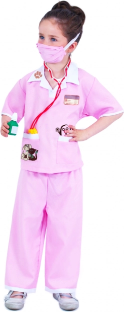Χαριτωμένη παιδική στολή για μικρές κτηνιάτρους σε μέγεθος S (4–6 ετών, 105–116 cm) σε ροζ χρώμα με ζωικό μοτίβο. Το σετ περιλαμβάνει μπλούζα, παντελόνι και μάσκα. Πρακτική EKO-συσκευασία που εξοικονομεί χώρο και τον πλανήτη και είναι ιδανική για e‑shops – λιγότερο πλαστικό, περισσότερη χαρά.