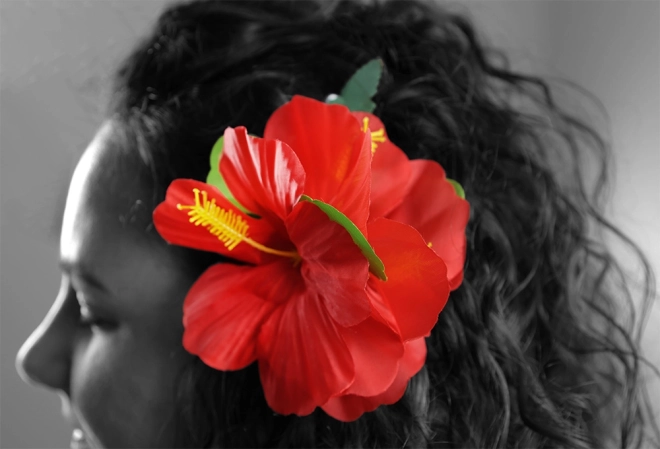Αυτό το κλιπ μαλλιών με λουλούδι φέρνει την εξωτικότητα κατευθείαν στο στυλ σας. Με τα έντονα κόκκινα άνθη και τα πράσινα φύλλα του, θα μεταμορφωθείτε στη βασίλισσα κάθε εκδήλωσης, είτε πρόκειται για πάρτι στην παραλία, χαβανέζικο βράδυ ή γιορτή στην πισίνα.
