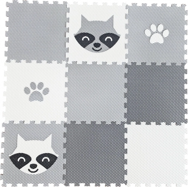 Αυτό το παιχνιδόχαρτο με μοτίβο ρακούν και αποτυπώματα πατουσών μεταμορφώνει κάθε παιδικό δωμάτιο σε έναν ασφαλή και μαλακό χώρο για παιχνίδι. Απλή και εύκολη συναρμολόγηση χάρη στα αλληλοσυνδεόμενα άκρα και το ανθεκτικό υλικό.