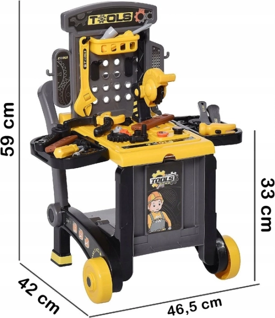 Οι μικροί αγαπούν να παρατηρούν και να μιμούνται τι κάνουν ο μπαμπάς, ο παππούς, ο μεγαλύτερος αδερφός ή οι φίλοι. Το εργαστήριο για μικρούς μάστορες είναι ένα εξαιρετικό εκπαιδευτικό παιχνίδι που επιτρέπει στα παιδιά να αναπτύξουν τη δεξιοτεχνία, τη λογική σκέψη και τη φαντασία.Το εργαστήριο προσφέρει ρεαλιστικά εργαλεία και αξεσουάρ, δίνοντας τη δυνατότητα στα παιδιά να μιμούνται όσα κάνουν οι ενήλικες και ταυτόχρονα να μαθαίνουν με ασφάλεια. Η χρήση εργαλείων όπως σφυρί, κατσαβίδι ή κλειδί αναπτύσσει τον κινητικό συντονισμό και την ακρίβεια, ενώ προσφέρει ικανοποίηση καθώς μπορούν να κάνουν μόνα τους μικρές «επισκευές».
