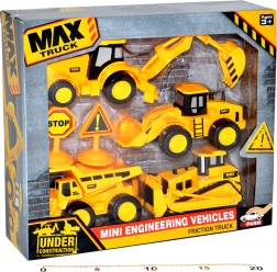 Σετ οχημάτων κατασκευών για μικρούς λάτρεις της κατασκευαστικής τεχνολογίας. Περιλαμβάνει τέσσερα διαφορετικά μηχανήματα, συμπεριλαμβανομένων μπουλντόζων και εκσκαφέων, που διευρύνουν τις δυνατότητες του παιχνιδιού.
