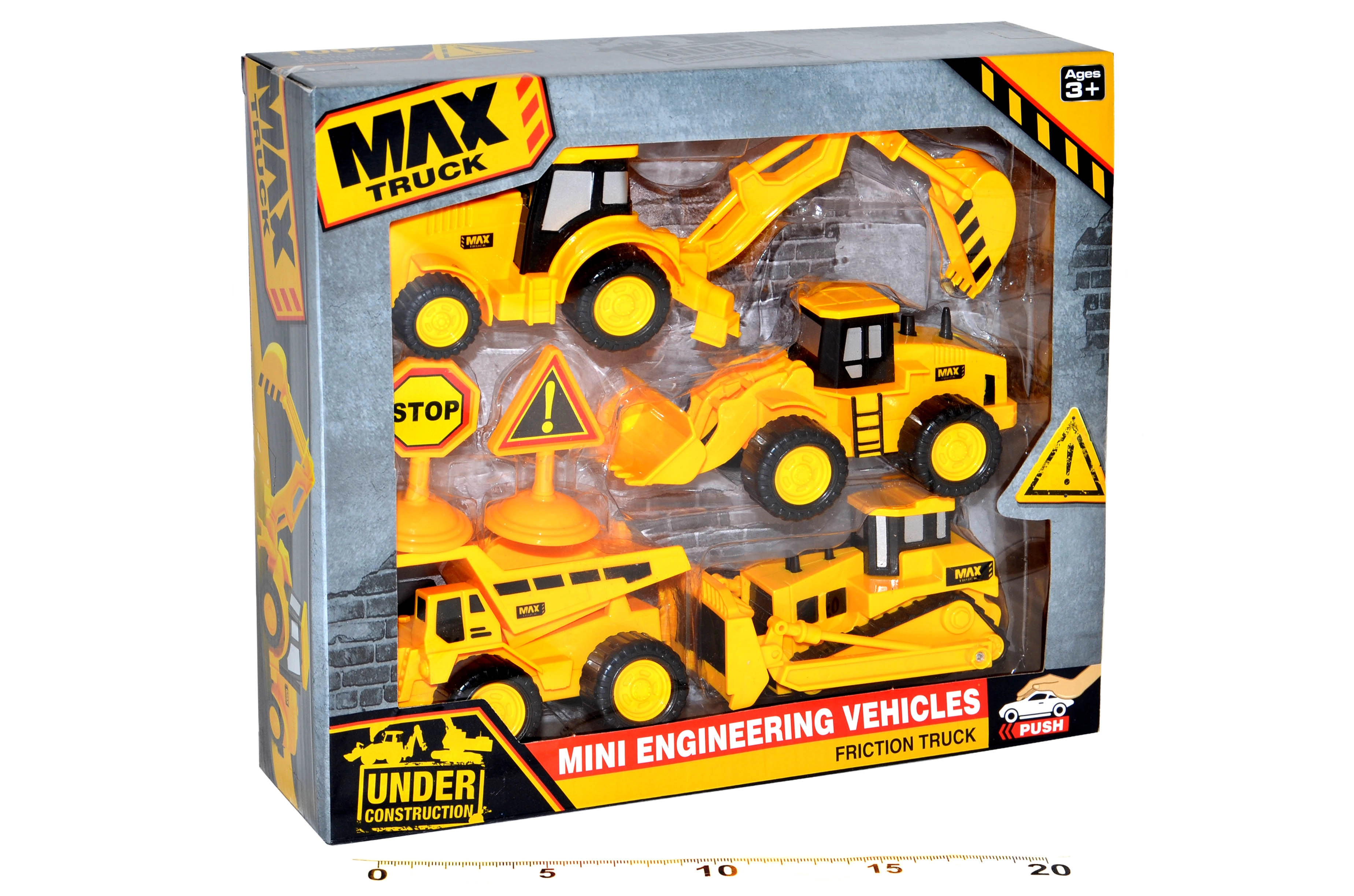 - Περιλαμβάνονται επίσης ανατρεπόμενο φορτηγό και πινακίδες σήμανσης, που εμπλουτίζουν τα σενάρια παιχνιδιού.