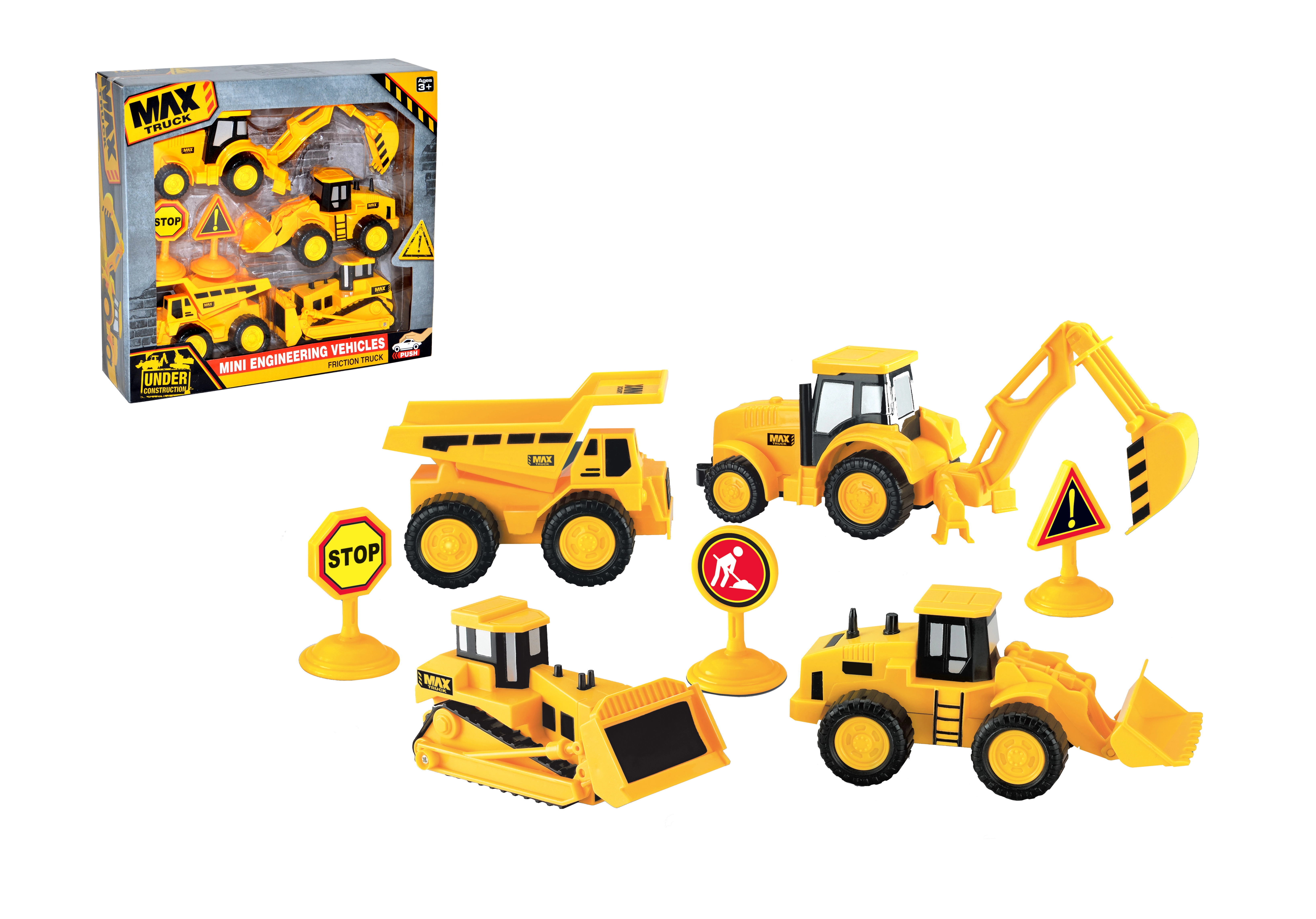 - Στο σετ θα βρείτε 4 διαφορετικά κατασκευαστικά οχήματα, συμπεριλαμβανομένων μπουλντόζων και εκσκαφέων.