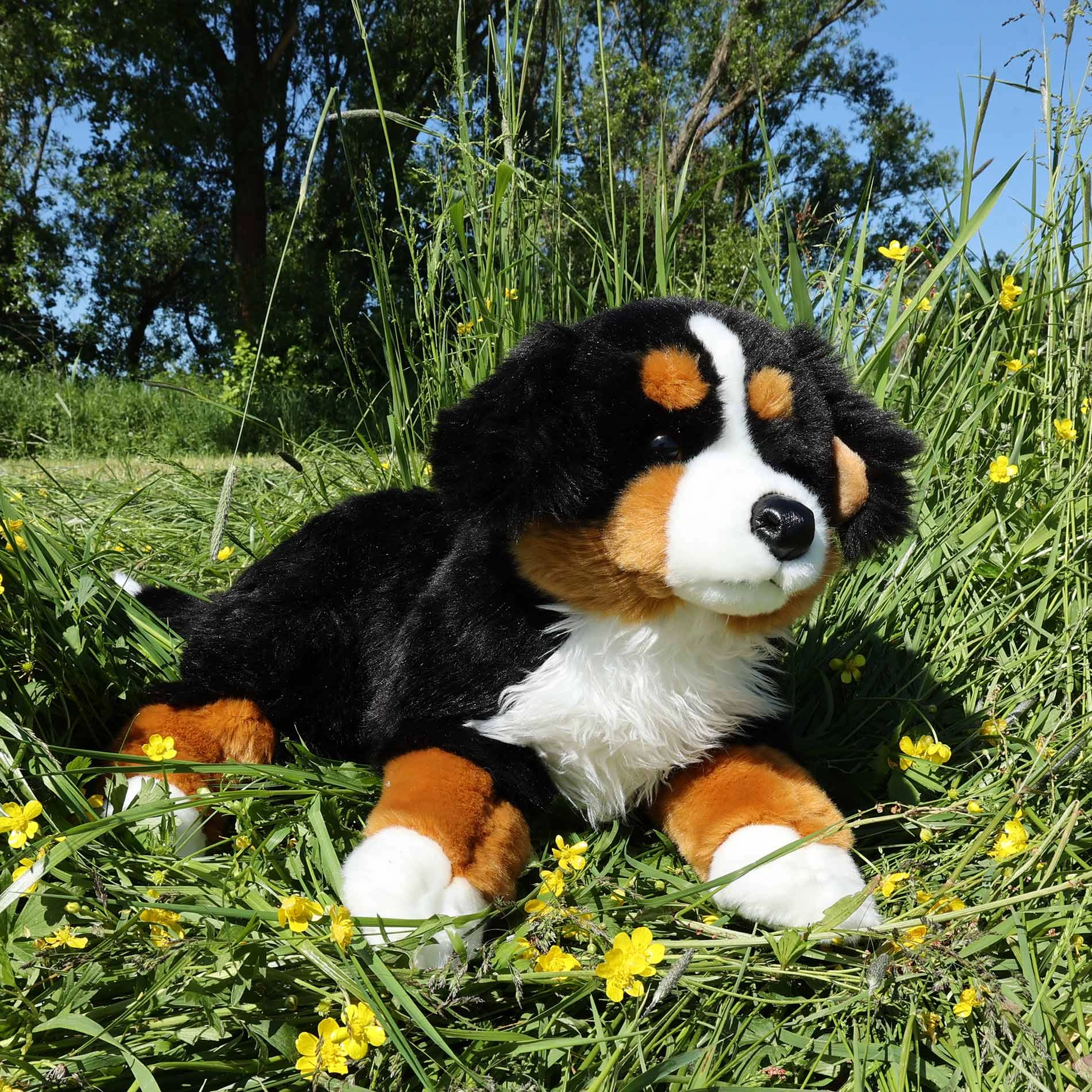 Χαριτωμένος λούτρινος Βερνέζικος Ορεινός σκύλος μήκους 61 cm που θα χαροποιήσει μικρούς και μεγάλους φίλους των ζώων. Είναι φτιαγμένος από υψηλής ποιότητας, απαλό ύφασμα λούτρινο και διαθέτει ρεαλιστική εμφάνιση, χειροποίητη κατασκευή και eco‑friendly γέμιση από ανακυκλωμένα μπουκάλια PET – ασφαλής ακόμη και για τα πιο μικρά παιδιά.