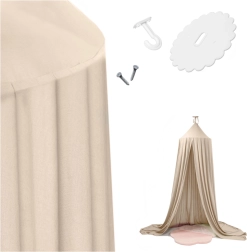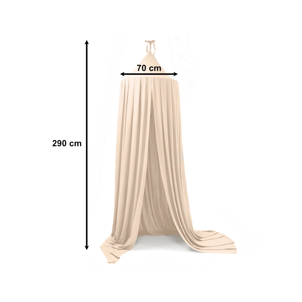 Ο μπεζ θόλος είναι ιδανικός ως ήσυχο καταφύγιο πάνω από την κούνια, ως γωνιά ανάγνωσης ή ως παιδική κρυψώνα. Το απαλό, αέρινο ύφασμα προσδίδει κομψότητα και ταιριάζει στους περισσότερους στιλ διακόσμησης παιδικού δωματίου.