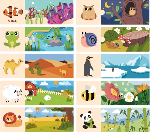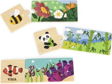 Αυτά τα λογικά παζλ της VIGA είναι το ιδανικό εργαλείο για την ανάπτυξη της παιδικής λογικής σκέψης και φαντασίας. Το παιχνίδι συνίσταται στη σωστή σύνδεση 20 έγχρωμων κομματιών, που μαζί δημιουργούν εικόνες με ζωάκια και το φυσικό τους περιβάλλον. Κάθε κομμάτι είναι προσεκτικά κατασκευασμένο από ξύλο, καλυμμένο με μη τοξικό χρώμα, εξασφαλίζοντας μεγάλη αντοχή και ασφάλεια για τα παιδιά.