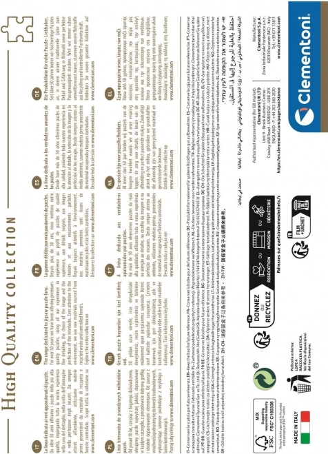 Ανακαλύψτε το κομψό θέμα του Παρισιού – ο Πύργος του Άιφελ, αστικά εμβλήματα και στυλάτη παλέτα χρωμάτων κάνουν αυτό το παζλ εξαιρετική επιλογή για λάτρεις των αστικών σκηνικών. Η μάρκα CLEMENTONI είναι γνωστή για την ακριβή εκτύπωση, την ανθεκτική κατασκευή και τα κομμάτια με ακριβή εφαρμογή.