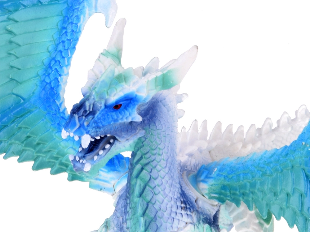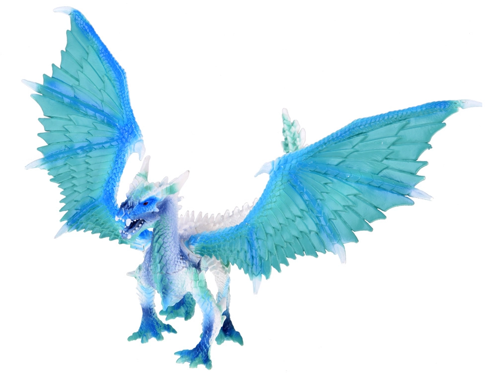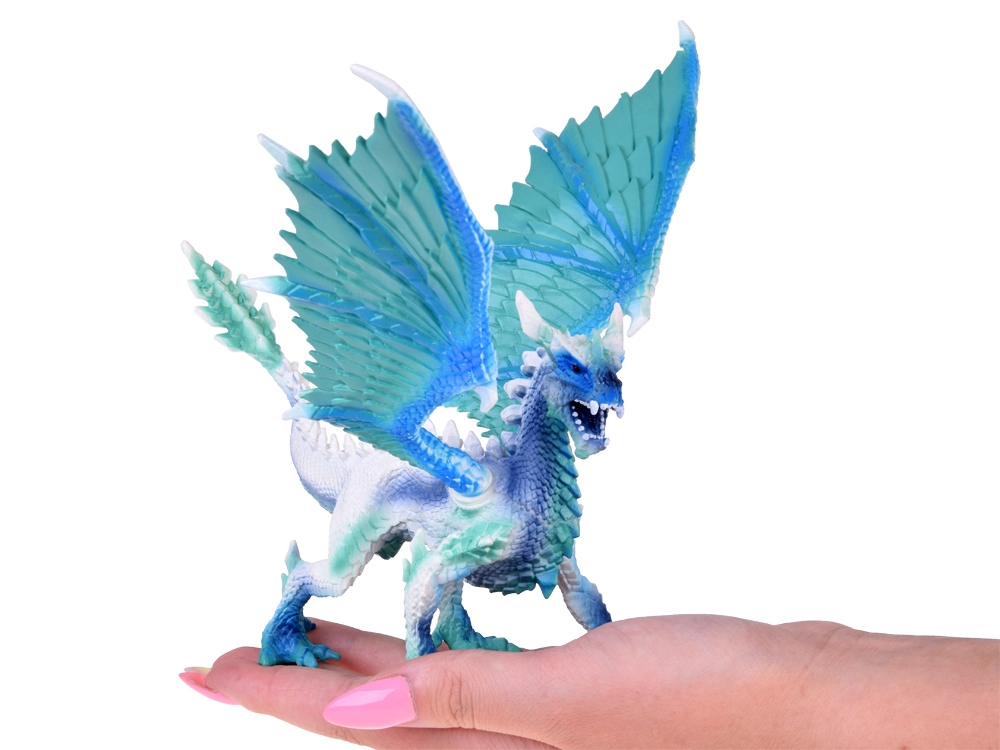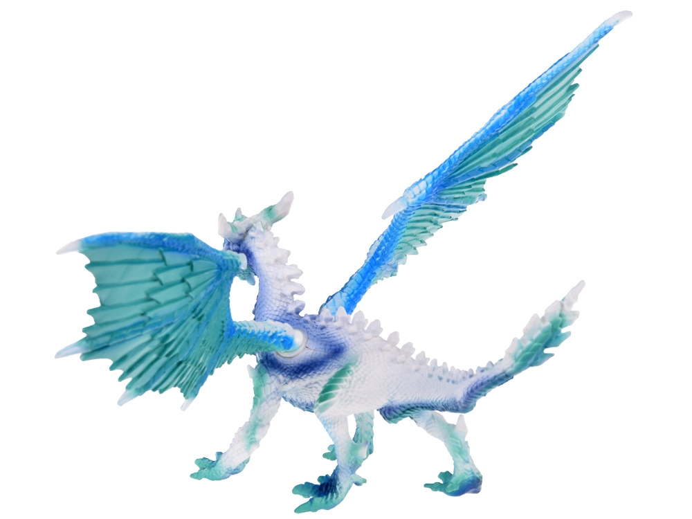 Αυτός ο μεγαλοπρεπής παγωμένος δράκος είναι σύμβολο δύναμης και φαντασίας. Χάρη στα εκτεινόμενα και αναδιπλούμενα φτερά δημιουργείτε εύκολα δυναμικές σκηνές πτήσης ή ξεκούρασης. Η ρεαλιστική υφή των φολίδων, τα κοφτερά νύχια και ο έντονος χρωματισμός διεγείρουν τη φαντασία και φέρνουν στο παιχνίδι την ατμόσφαιρα μύθων και περιπέτειας.
