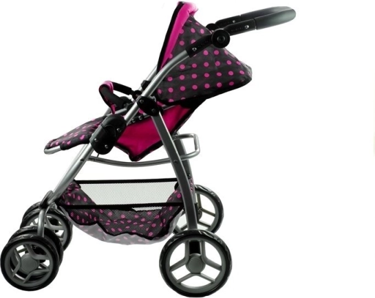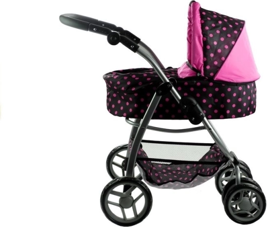 Το καροτσάκι Alice 2-σε-1 σε μαύρο-ροζ σχεδιασμό συνδυάζει στυλ και λειτουργικότητα. Έχει σχεδιαστεί ώστε να μοιάζει με πραγματικό καροτσάκι, ενισχύοντας την υπευθυνότητα και την ενσυναίσθηση των μικρών μαμάδων κατά το παιχνίδι. Οι εναλλαγές μεταξύ βαθιού πορτ-μπεμπέ και αθλητικού καθίσματος προσθέτουν διασκέδαση και αναπτύσσουν διαπροσωπικές δεξιότητες, φαντασία και δημιουργικότητα των παιδιών.