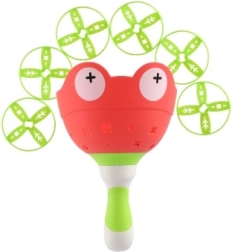 Φανταστικό παιχνίδι για παιδιά που αγαπούν τα δραστήρια παιχνίδια! Τραβήξτε το κορδόνι στο εκκινητή σε σχήμα βάτραχου και δείτε πόσο ψηλά θα πετάξουν οι προπέλες έτοιμες για απογείωση. Ιδανικό για ανάπτυξη συντονισμού και διασκέδαση.