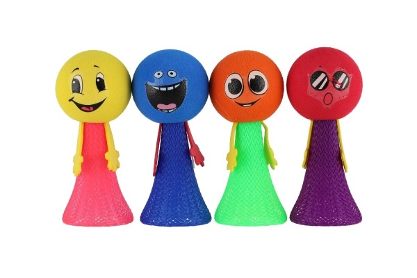 Η πηδηχτή μπαλίτσα με φιγουρίτσα είναι ιδανική για μια γρήγορη δόση χαράς και κίνησης. Χάρη στον ελαφρύ αφρό, το ελαστικό κωνικό σώμα και την έξυπνη αρχή πίεσε–άφησε, πετάγεται ψηλά και διασκεδάζει παιδιά και μεγάλους. Οι χρωματικές παραλλαγές και τα χαριτωμένα προσωπάκια ενισχύουν τη φαντασία και το αυθόρμητο παιχνίδι.