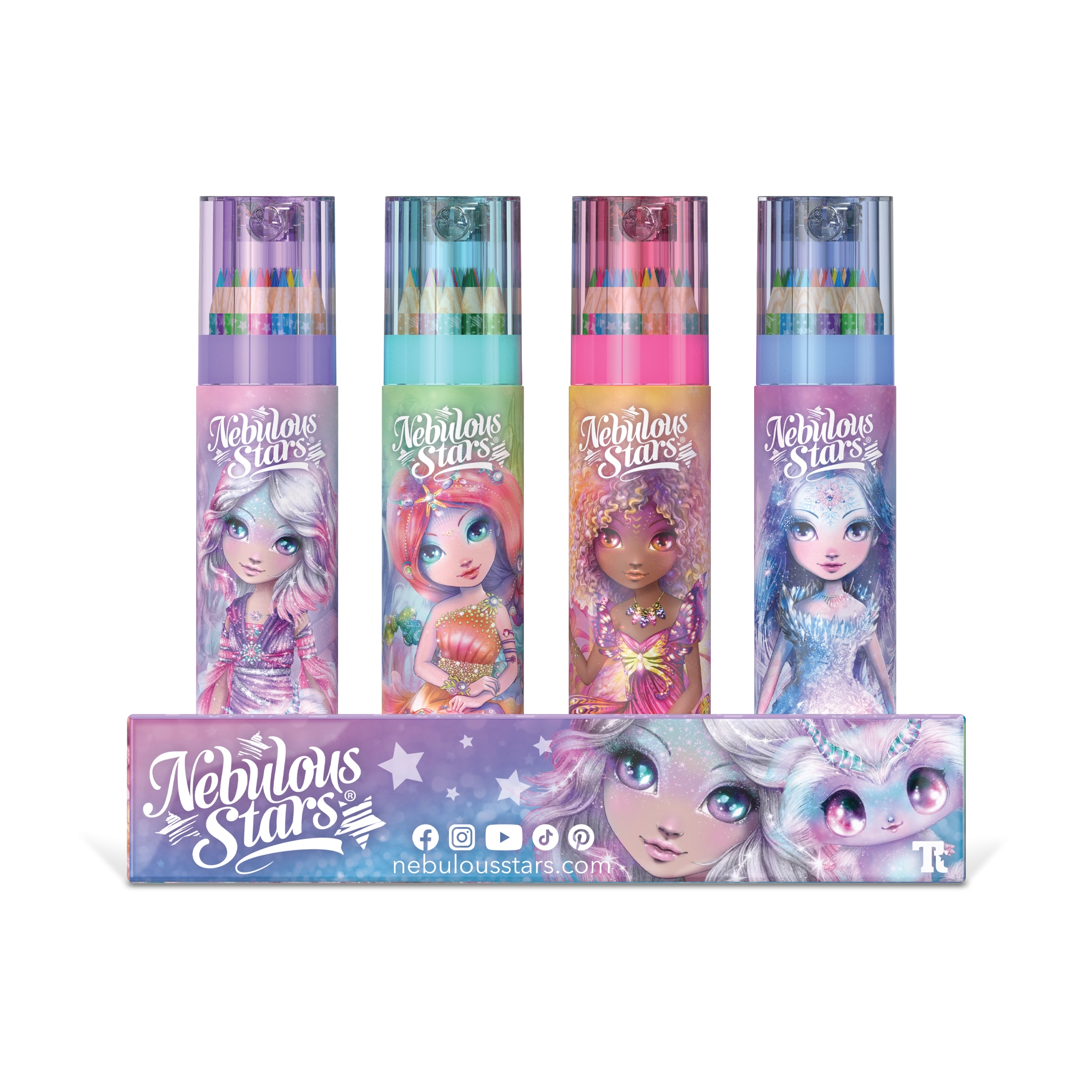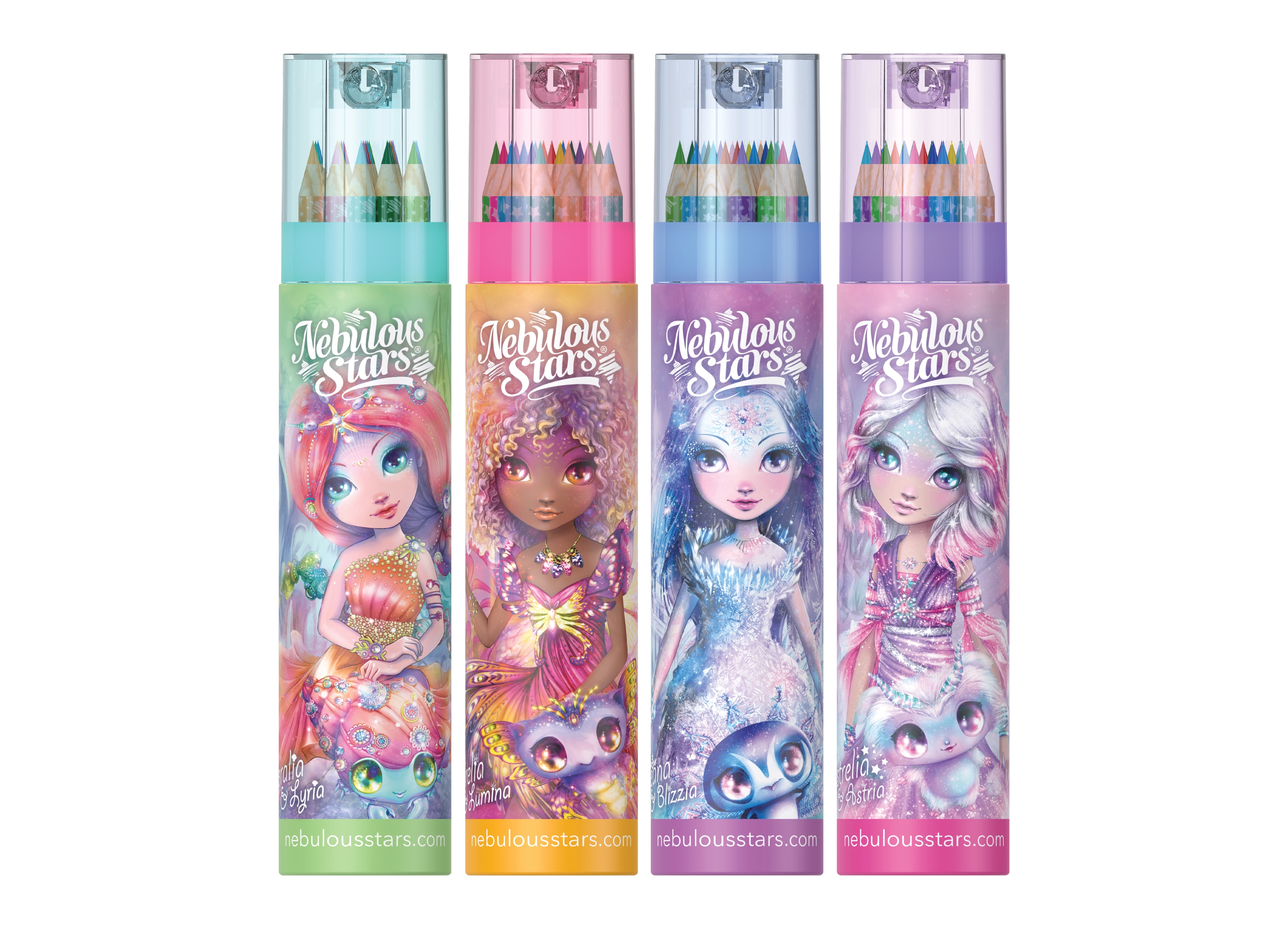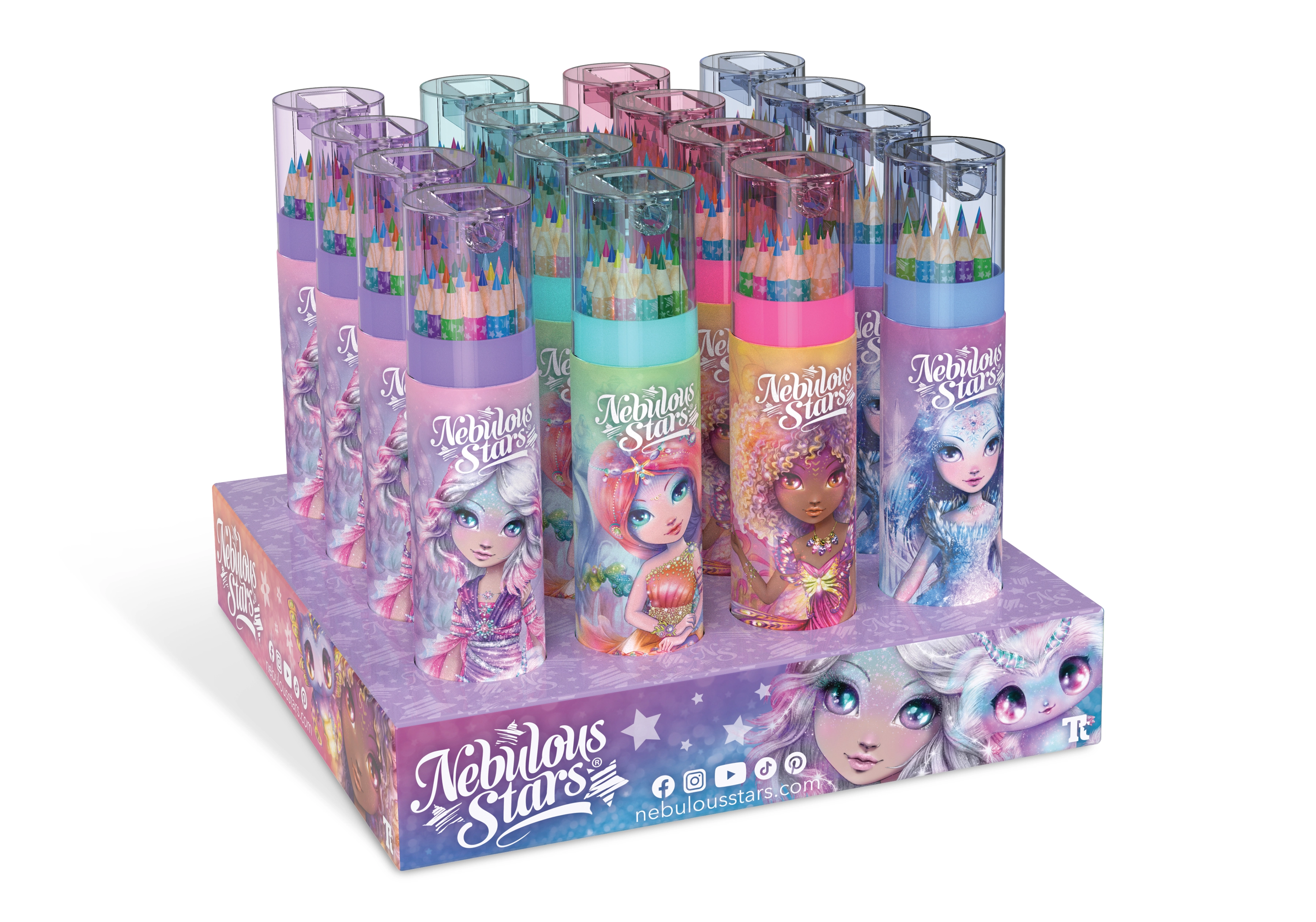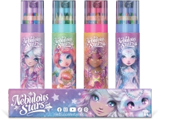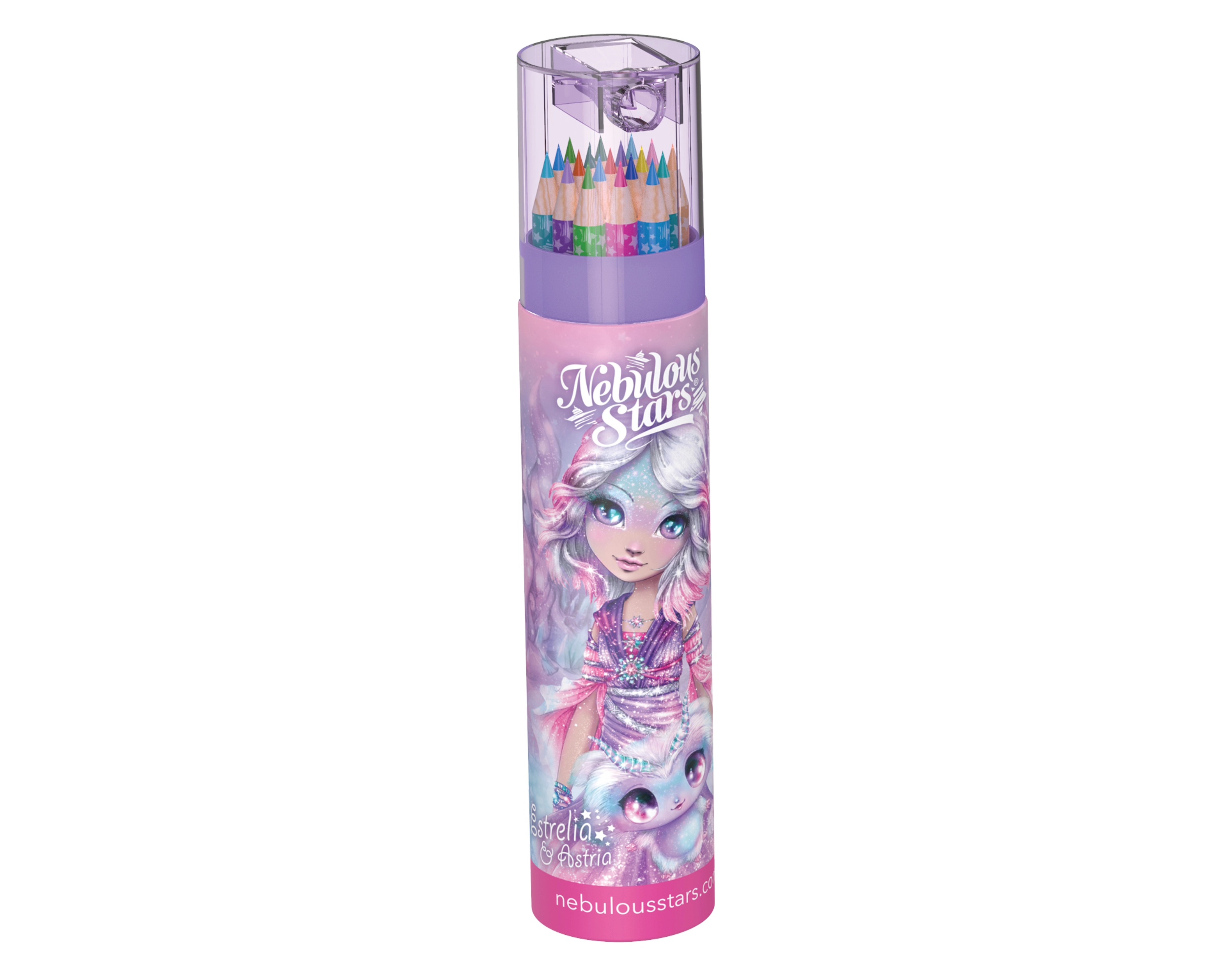 Στυλάτο σετ με 18 χρωματιστά μολύβια σε πρακτικό σωληνάριο NEBULOUS STARS, συμπληρωμένο με 1 μολύβι γραφίτη και ενσωματωμένη ξύστρα. Χρωματικές εκδοχές σωληναρίου: μοβ, πράσινο, ροζ, μπλε.